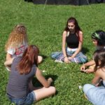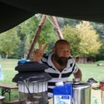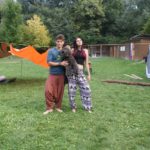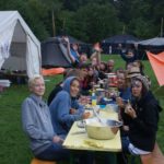Bevor sie den Lagerplatz richtig auskundschaften konnten, mussten allerdings erst mal die Zelte aufgebaut werden, was drei Jurten, eine Kohte und das Küchenzelt beinhaltetete. Da alle etwas erschöpft vom frühen Aufstehen waren, verbrachten sie den Rest des Tages, ohne großes Programm, einfach nur auf dem Lagerplatz und bald gab es auch schon Abendessen.