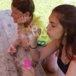 Nachdem Dienstag Vormittag wieder einige im See verbracht haben, ging es am Nachmittag erneut an die Handarbeiten. Was alle eifrig mitgemacht haben ,denn sie haben sich aus zerschnittenen Putzlappen Wasserbomben gebastelt und diese in der darauf folgenden Wasserschlacht direkt auf die Probe gestellt.
