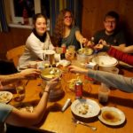 Nach dem Essen saßen wir oft noch lange zusammen sangen, redeten, spielten Spiele, benutzten die benachbarte Skipiste zum Schneerutschen oder ließen einfach noch ein wenig den Abend ausklingen. Auch der Silvesterabend kam trotz des voran gegangenen Skitags nicht zu kurz und so feierten wir mit Käse-Fondue und einem Ugly-Sweater-Contest in das neue Jahr.